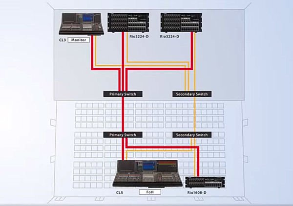 Yamaha CL series consoles communicate with Yamaha's Rio I/O boxes via Dante, allowing for fast and efficient system design for live sound and broadcast. Up to eight I/O units can be connected to your CL series console, and you can place them anywhere that you need in your facility. All Rio I/O boxes support redundant connectivity for maximum reliability.