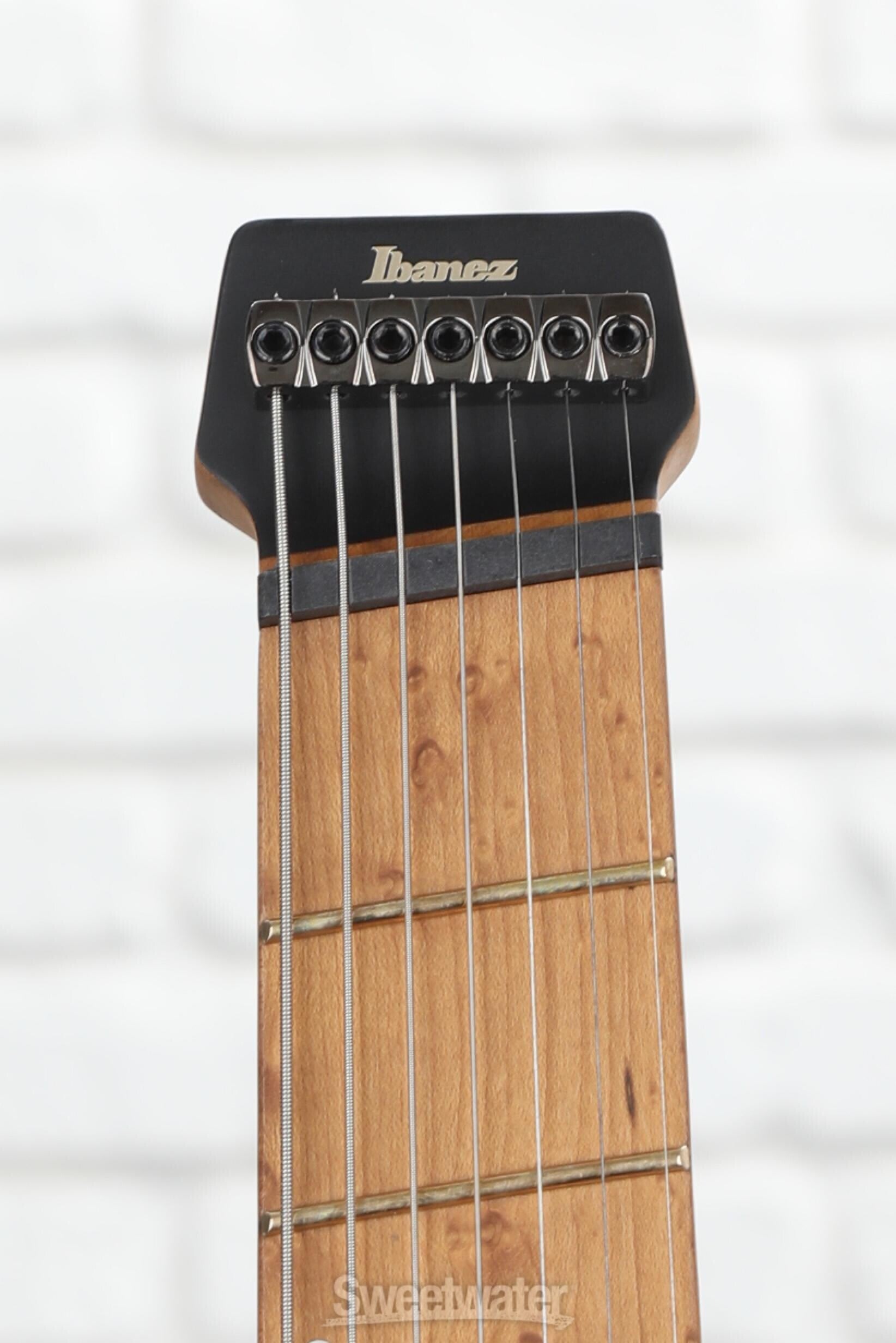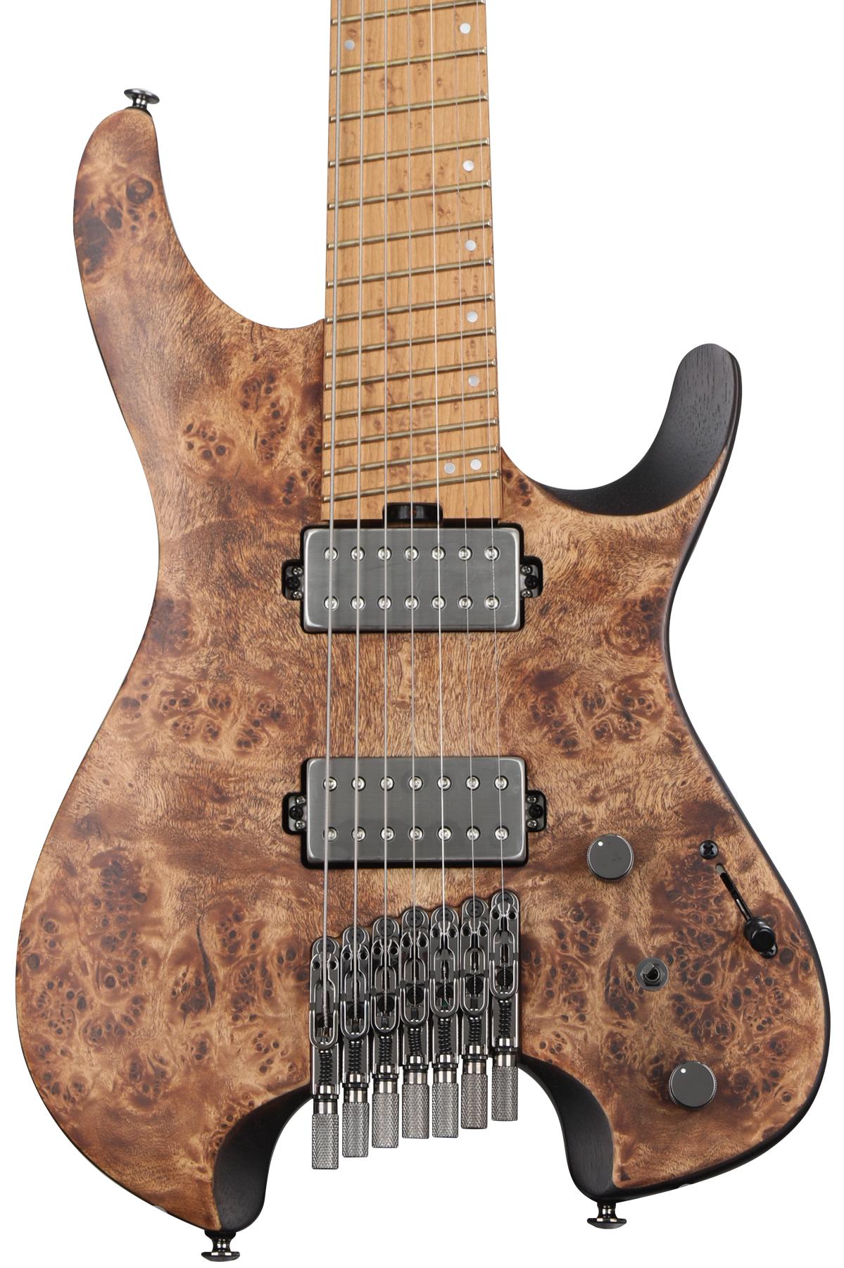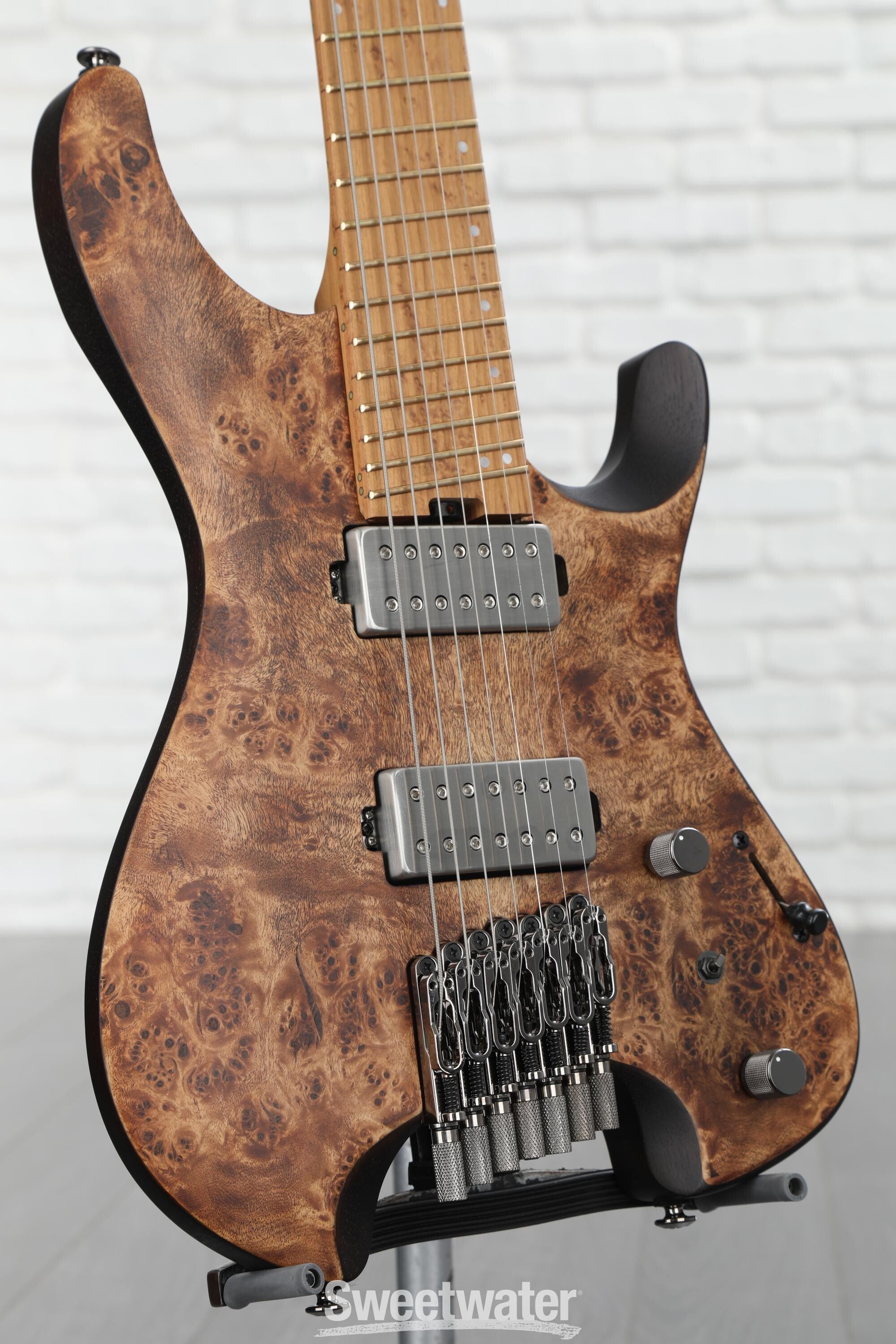 Part of Ibanez's boundary-pushing Quest series, the QX527PB vaunts a headless design built from the ground up to maximize tone, performance, and playing comfort. This 7-string electric guitar's lightweight nyatoh body resonates with rich, woody tones, while its poplar burl top brings eye-grabbing visuals into the fray. Technically minded players will be blown away by the zero-drag feel of the QX527PB's Parallel Wizard neck, and its slanted frets make intricate fretboard maneuvers like tapping, fingerstyle, and slapping feel effortless. This headless guitar's made-to-measure pickups exude amazing levels of articulation and definition that are bolstered by Ibanez's acclaimed dyna-MIX10 switching system. Rock-solid hardware, including a custom string lock and innovative Mono Tune bridge, ensures easy string changes and ultra-reliable, stage-worthy performance. Stainless steel frets round out the QX527PB's generous features. If you've been hunting for the perfect headless electric guitar — or even if you're considering your first headless instrument — the Ibanez QX527PB is guaranteed to unlock unlimited creative possibilities.