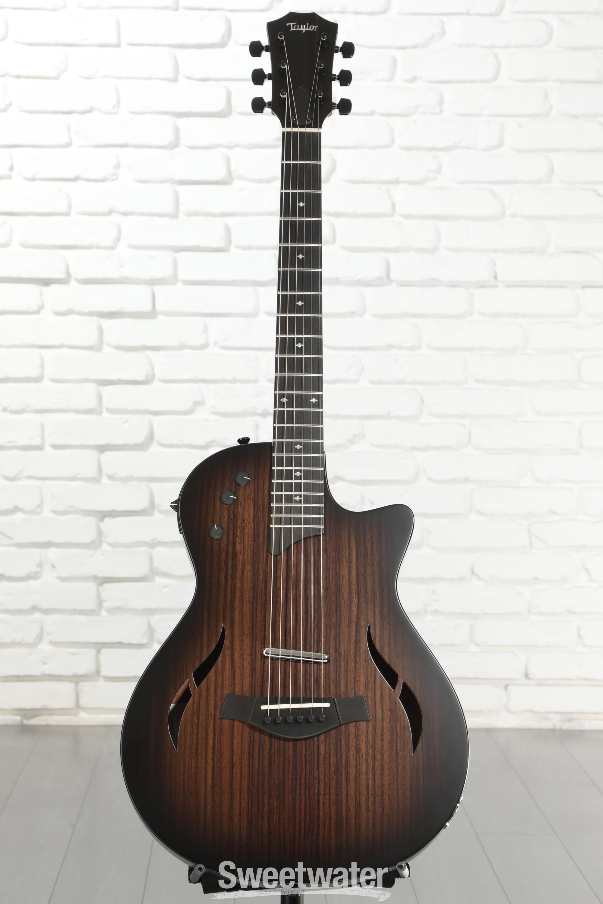 Inspired by the Taylor Grand Auditorium silhouette, the T5z Classic features a sleek and comfortable-to-hold carved hollowbody of sapele. Like all Taylor guitars, a custom-voiced soundboard is the heart of the T5z tone; the rosewood top creates a strong, colorful voice with prodigious sustain. Finally, stylized F-holes command the eye and enhance the resonance of the body chamber, allowing the top to breathe and capture the dynamics your performances.