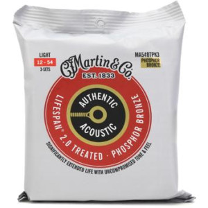 Martin MA540T Authentic Acoustic Lifespan 2.0 Treated 92/8 Phosphor Bronze Guitar Strings - .012-.054 Light (3-pack)