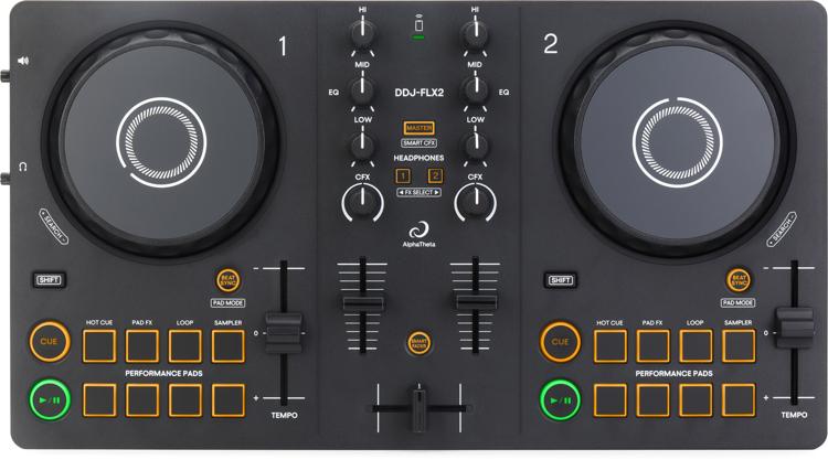 AlphaTheta DDJ-FLX2 2-deck DJ Controller 2-deck DJ Controller with Multi-app and Streaming Support, Computer/Tablet/Smartphone Compatibility, Smart Controls, FX, 16 Performance Pads, and Bundled Software