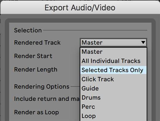 Now with Live 10.1, you can export tracks that use return tracks with effects by enabling the new Include return and master effects setting in the Export Audio/Video window. This allows you to export stems as normal, as well as tracks that use effects on return tracks.