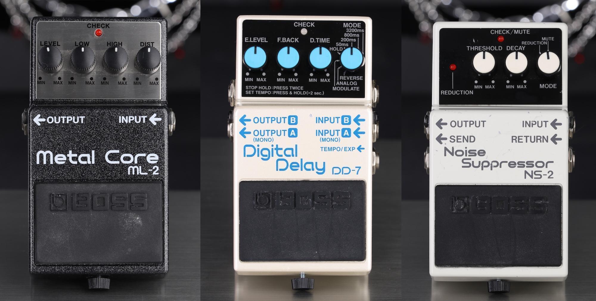 BOSS Pedals: Metal Core ML-2, Digital Delay DD-7, and Noise Suppressor NS-2