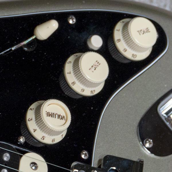 The potentiometers, often referred to as pots, control the volume and tone of your guitar. The tone knob(s) allow you to adjust the amount of high frequency, or brightness, of your guitar, while the volume knob(s) adjust the overall output of your guitar.