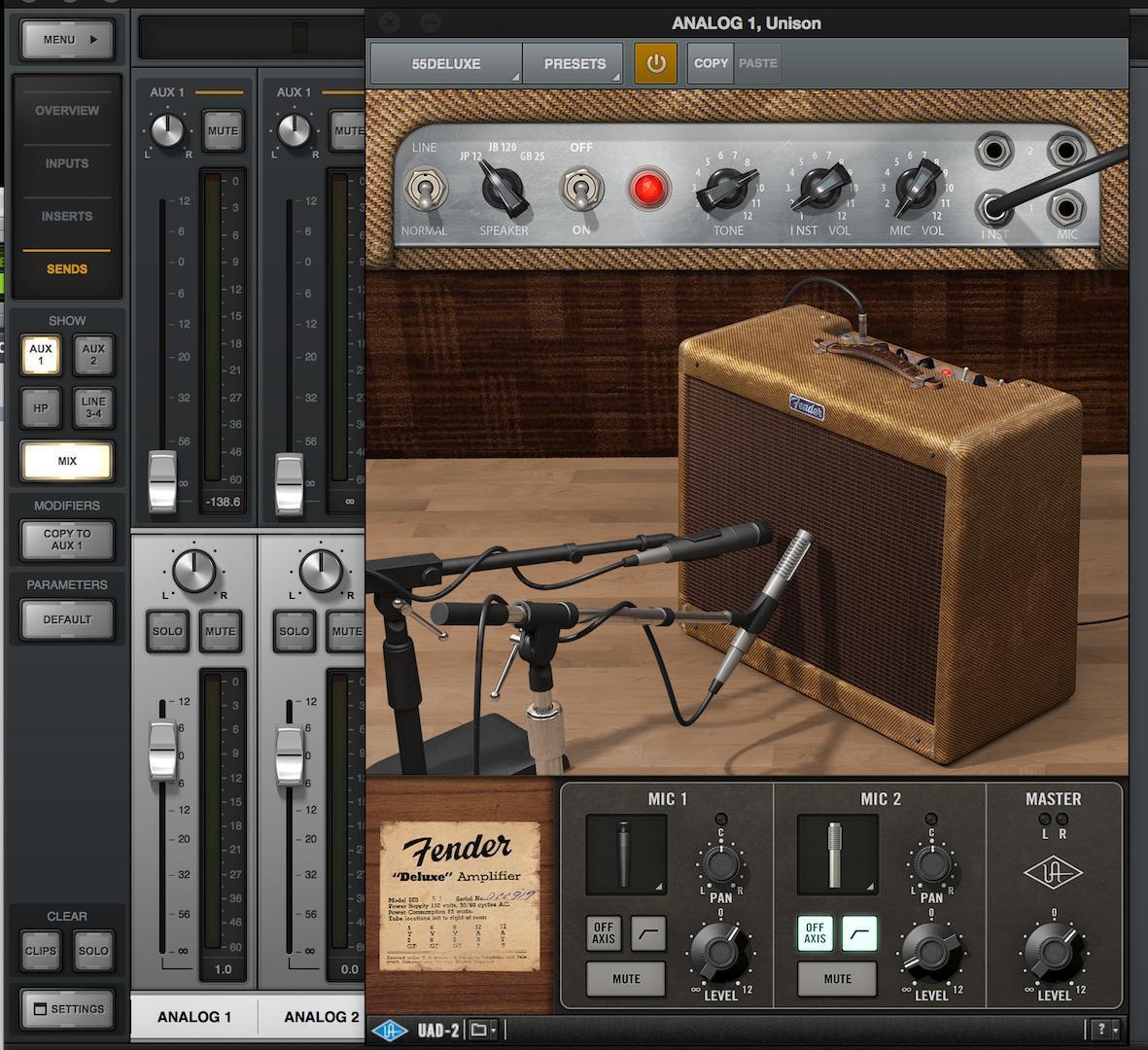 To further paraphrase, Unison-enabled UAD preamp, guitar amp, and pedal plug-ins reconfigure the physical input impedance, gain-staging response, and other parameters of Apollo’s preamp hardware to match the emulated hardware’s design characteristics. Because the hardware and software are intricately unified, Unison provides continuous, real-time, bidirectional control and interplay between Apollo’s physical preamp controls and the software settings in the Unison plug-in interface.