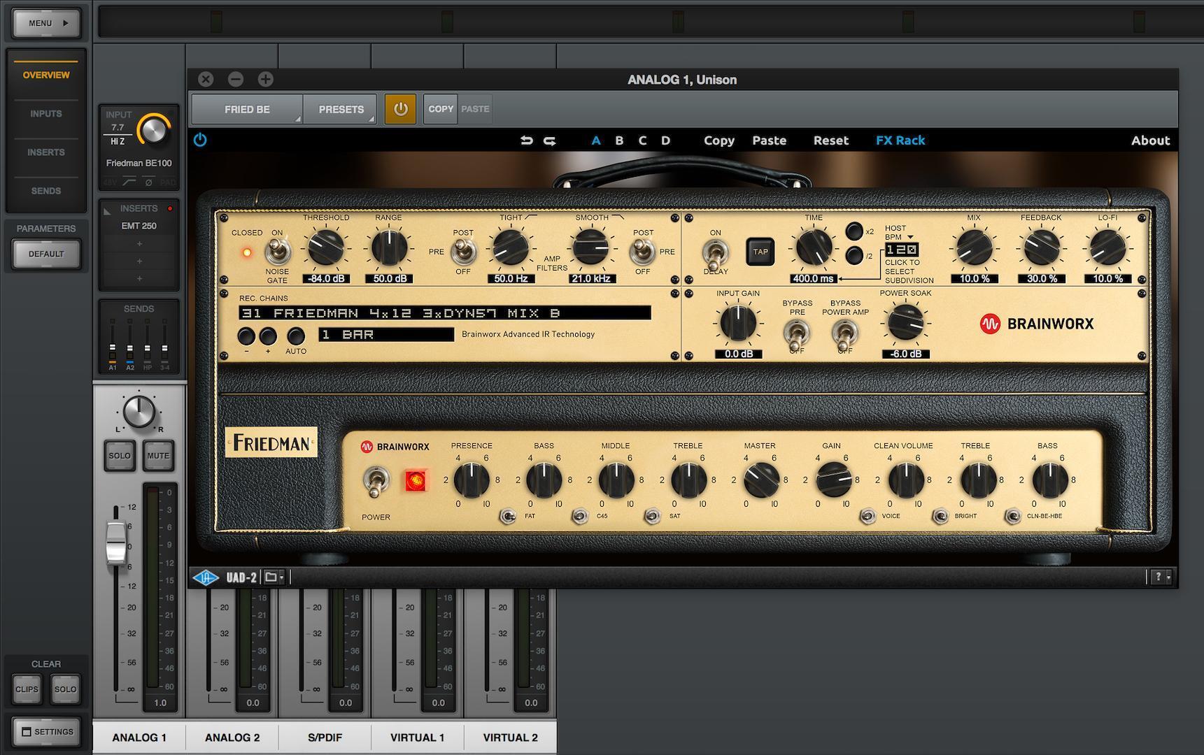 This is a huge factor of why the sound and response of the amp/pedal/preamp sims are so amazing in the Apollo world. Paraphrasing the manufacturer, Unison is audio processing that starts right at the source, the input stage, allowing Apollo’s preamps to sound and behave like tube and solid-state preamps, guitar amps, and pedals — including their all-important impedance, gain-stage “sweet spots,” and component-level circuit behaviors.
