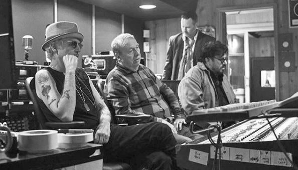 Billy Bob Thornton and J.D. Andrew, of the Boxmasters, in the studio with Geoff Emerick working on their recent album.