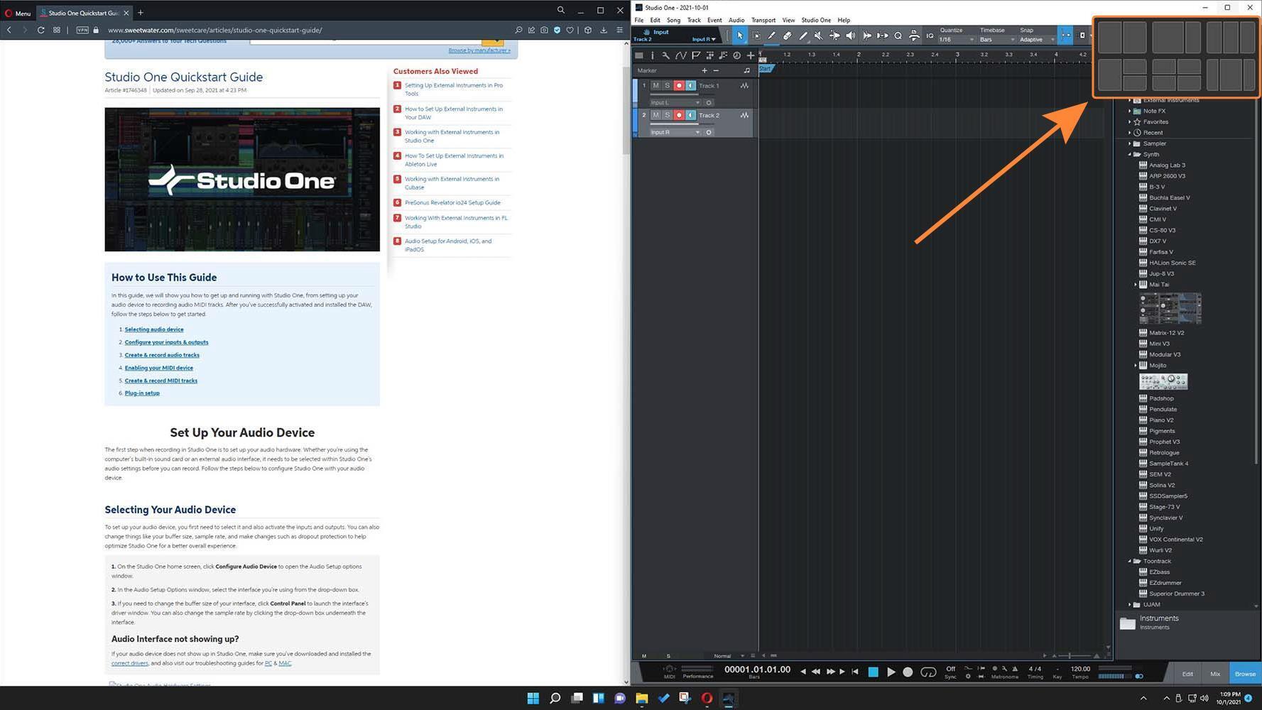 For example, if you’ve just launched a DAW for the first time and you’re learning how to navigate through it, then create a snap group where your DAW takes up the right half of the screen and a SweetCare guide on the left. Now you don’t have to minimize one window just to open another.