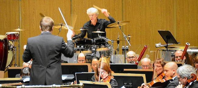 No. I’m very organic. In fact, when I play with an orchestra, it’s completely acoustic for a specific dynamic range. Instead of with a rock band, which is from seven to 12, with an acoustic orchestra, it’s from zero to four. There’s no microphones, there’s no PA, there’s no need for soundcheck. Sixty guys just go out there on a wooden stage and play the music. And, by the way, I’m there on a drum set designed to play up against stadium amplifiers. Twenty feet away from me, the nice lady is playing the beautiful violin solo that I wrote for her and would love the audience to hear. That’s where the zero to four dynamic range comes in.