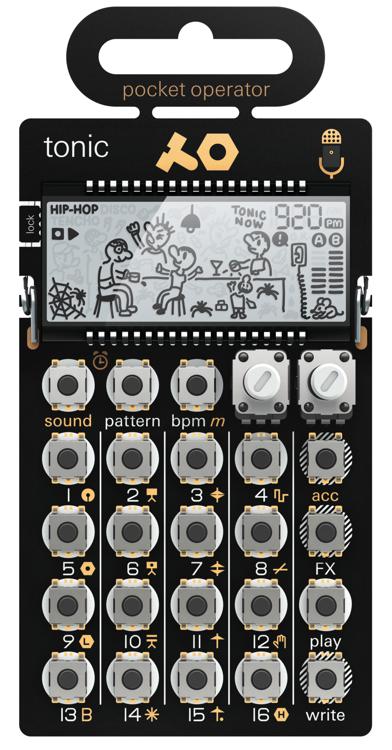 The Teenage Engineering Pocket Operator PO-32 Tonic is one of the most compact and portable drum and percussion synthesizers ever. With a 16-step sequencer and support for parameter locks and punch-in effects, you can create complex grooves anywhere and anytime. The 16 preset sounds are huge and punchy, and you can use the Sonic Charge Microtonic plug-in (sold separately) to create your own sounds and transfer them to the PO-32. And with Jam Synch enabling you to integrate with the rest of your Pocket Operators, the Teenage Engineering Pocket Operator PO-32 Tonic is a powerful drum machine and percussion synth.