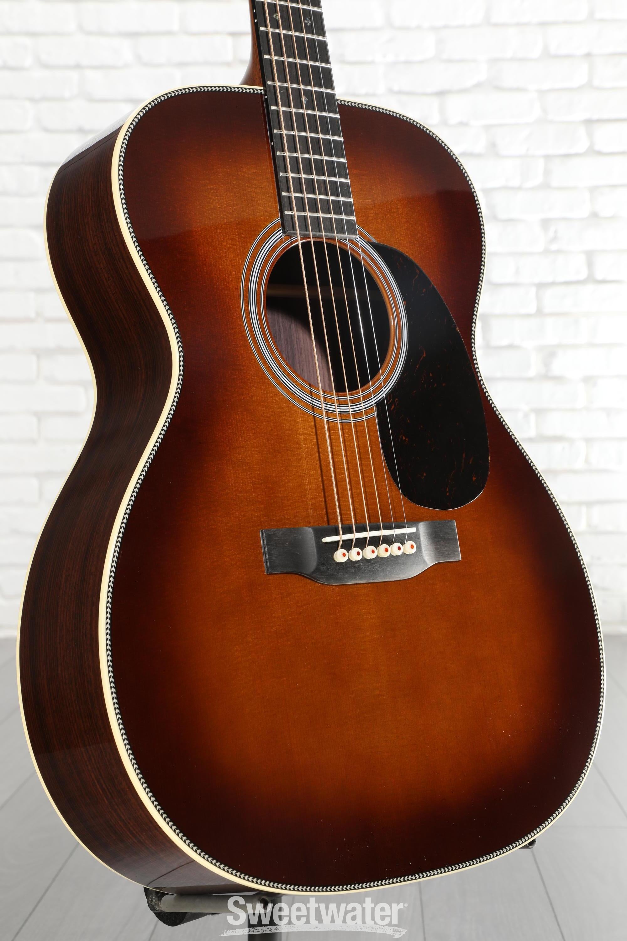 Making waves as one of Martin's most influential and high-fidelity acoustic body styles, the 000-28 continues to provide contemporary musicians and homebody players with traditional tone and power. Bound by tradition, Martin's Standard series acoustic guitars represent the pinnacle of golden-age acoustic guitar design, albeit equipped with an assemblage of modernized features for improved play and comfort. Potent sonics begin within the 000-28's meticulously selected spruce and rosewood tonewood formula and elite GE-scalloped X-bracing, fostering a developed yet authentic tone with plenty of room to accommodate any genre or play style. Its contemporary upgrades come in the form of complementary nickel hardware, a true bone nut and compensated bone saddle, and "Golden Era" appointments. Whether you're a fan of Martin's coveted mid-century guitar-building practices or need a new asset in your acoustic arsenal, the 000-28 is a ripe contender.