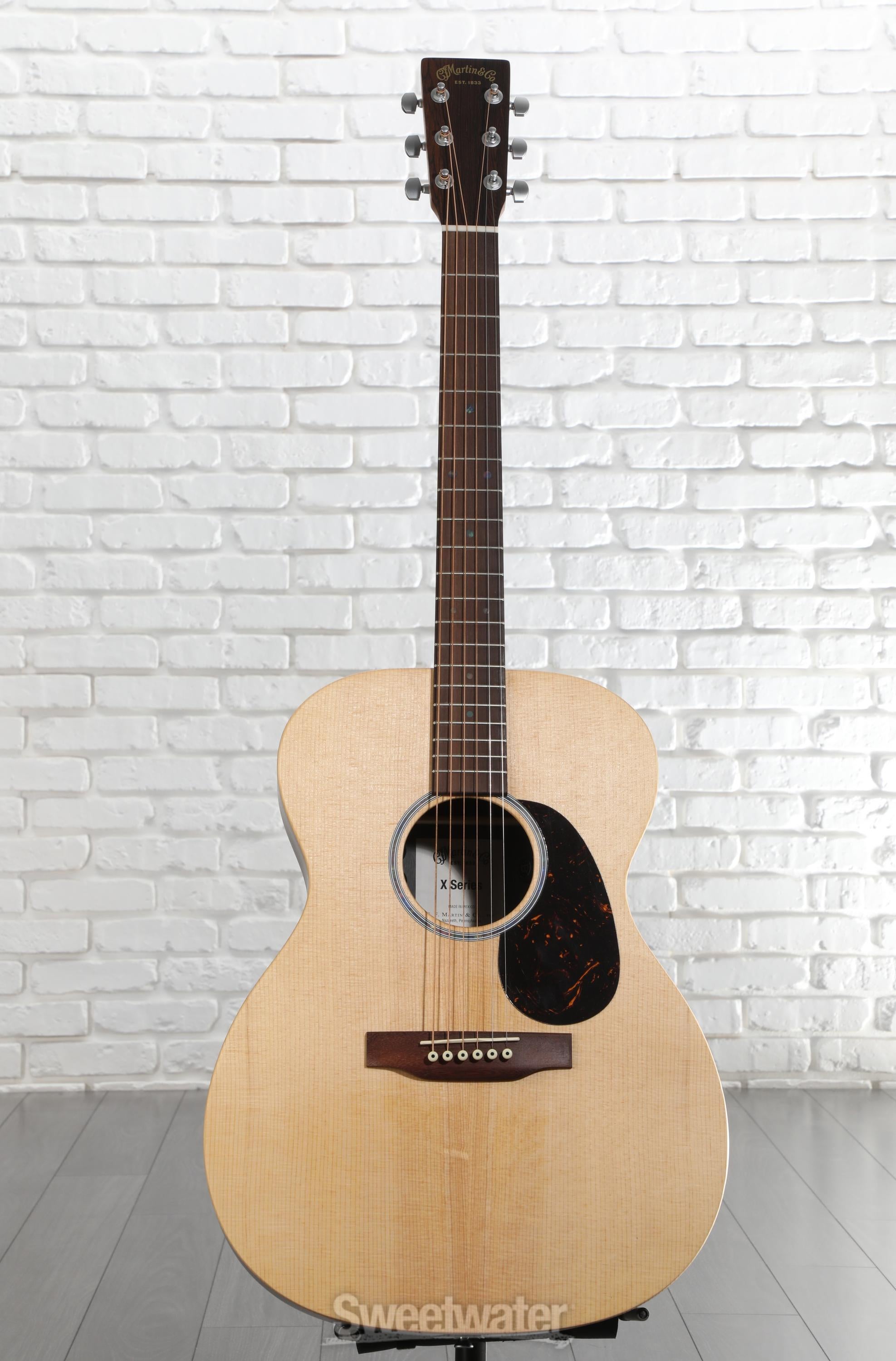 This 000-X2E Brazilian acoustic-electric puts the voice and vivacity of a veritable Martin 6-string within the reach of any guitarist. Fronted with a bright and balanced spruce top and backed by a laminated back and sides of round and resonant Brazilian rosewood, this 000-bodied guitar sings with a delightfully full tonality and X-braced projection that will ably accommodate just about any musical avenue you cruise down. Plug-in for performances, and let versatile Martin E1 onboard electronics reveal the crystal clear and all-natural tones of the 000-X2E to larger audiences. Its easy-to-handle PA neck profile lands confidently in the palms of guitarists from any background as well, from beginners and advancing players to seasoned veterans. Ornamented with Style 28 dot inlays, an abalone rosette, tortoise pickguard, satin chrome tuners, and the iconic C.F. Martin & Co. insignia at the matching headstock, this Martin looks and performs above its paygrade!