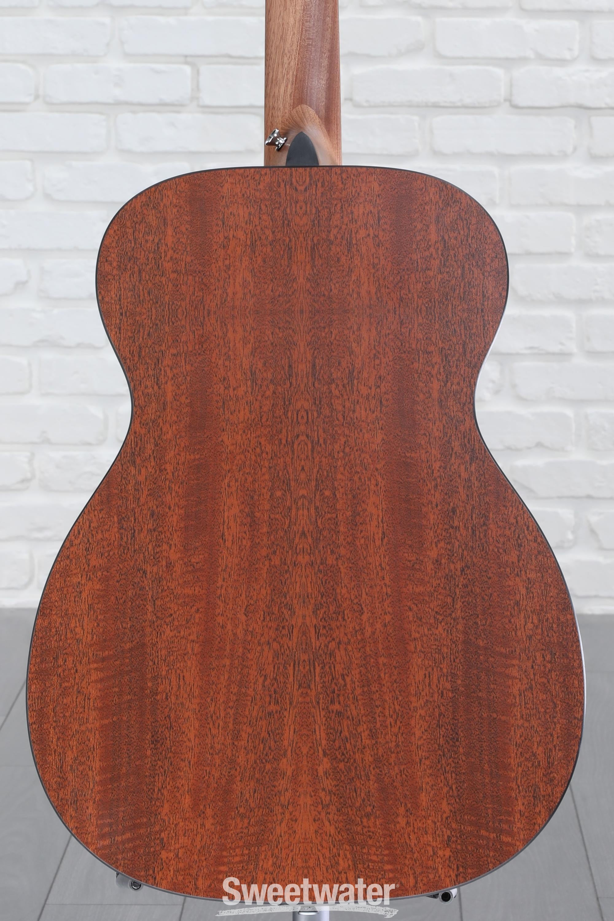 Coming to the amplified aid of the Sean Daniel signature is an onboard Martin E-1 preamp that offers an astounding amount of shaping versatility and performance convenience. An under-saddle pickup absorbs and translates the natural acoustics of the instrument with faithful tonality and phenomenal clarity. Just inside the soundhole, volume and tone controls allow you to fine-tune the sonic blend to fit the space, and a reverse phase control combats feedback and improves bass response. Its chromatic tuner keeps your intonation in check throughout every show, muting all output while engaged, for minimal projection when making adjustments.