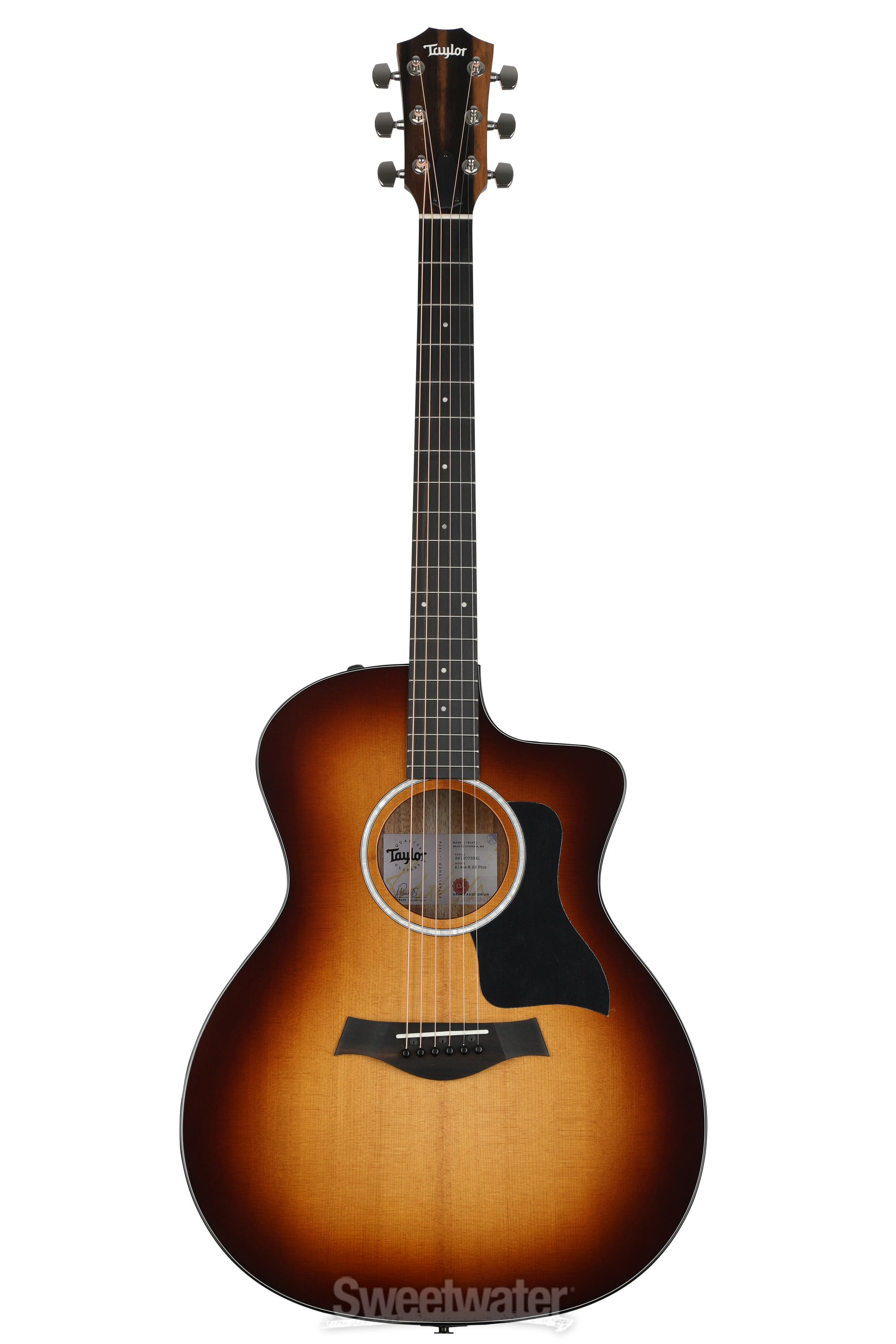 Acoustic guitar players at Sweetwater agree that the hallmark of a good guitar is how well it plays. We’re pleased to report that the Taylor 214ce-K SB Plus’s neo-tropical mahogany neck feels at home in your hand. It sports a comfortable neck carve and a smooth-as-glass ebony fingerboard for quick, comfortable playing. We like the neck of 214ce-K SB Plus, and we feel confident that you will, too.