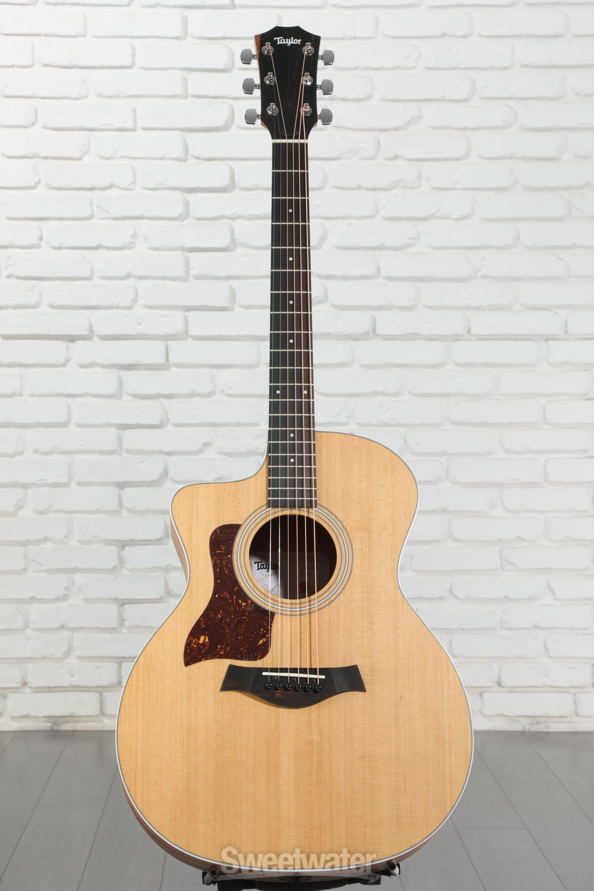 Taylor has been a guitar brand that I've been chasing since 2018. When I found a model/series that my wallet could handle, I landed on the Taylor 200 series. Sweetwater was offering a great deal and this particular guitar was available, (with a gig bag) so I gladly clicked enter on my keyboard. I think most guitar players strive for the best construction and craftmanship. Maybe we all ask ourselves, is it pretty and does it play well? Yes, this 214ce is very pretty and it plays great! My marathon with guitars and playing chords and having fun continues. Thanks so much.