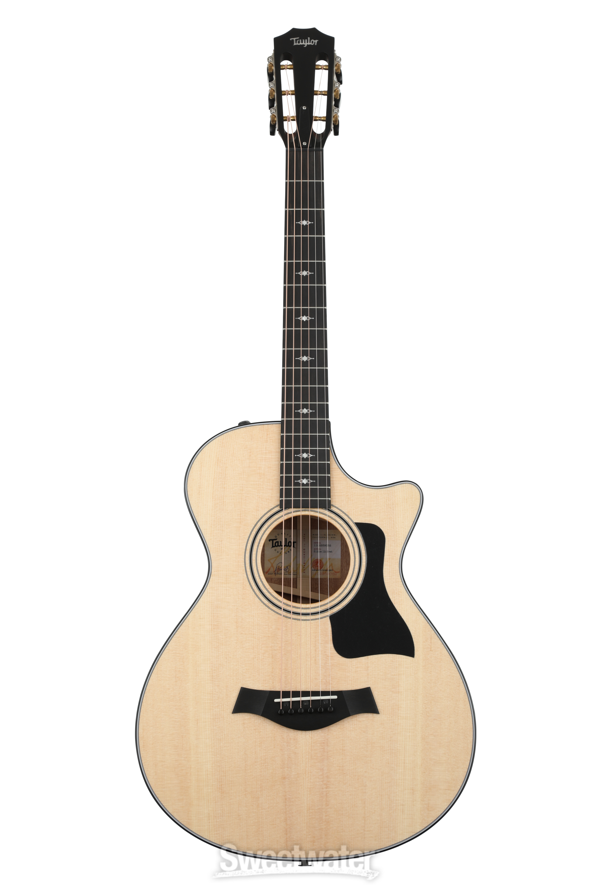 Combining understated aesthetics, tone-enhancing details, and amazing value, Taylor’s 300 Series guitars are incredibly popular. The richly grained Sitka spruce top of the 312ce 12-fret Grand Concert V-Class acoustic-electric pairs beautifully with its sapele back and sides to deliver a powerful, beautifully balanced sound with punchy midrange focus and clear treble — a sound forged by Taylor’s revolutionary V-Class bracing and amplified flawlessly by the onboard Expression System 2 electronics. The 312ce is a perennial favorite here at Sweetwater, and it’s easy to see — and hear — why. While you delight in its beautiful tone, your eyes will savor the 312ce’s tasteful appointments.