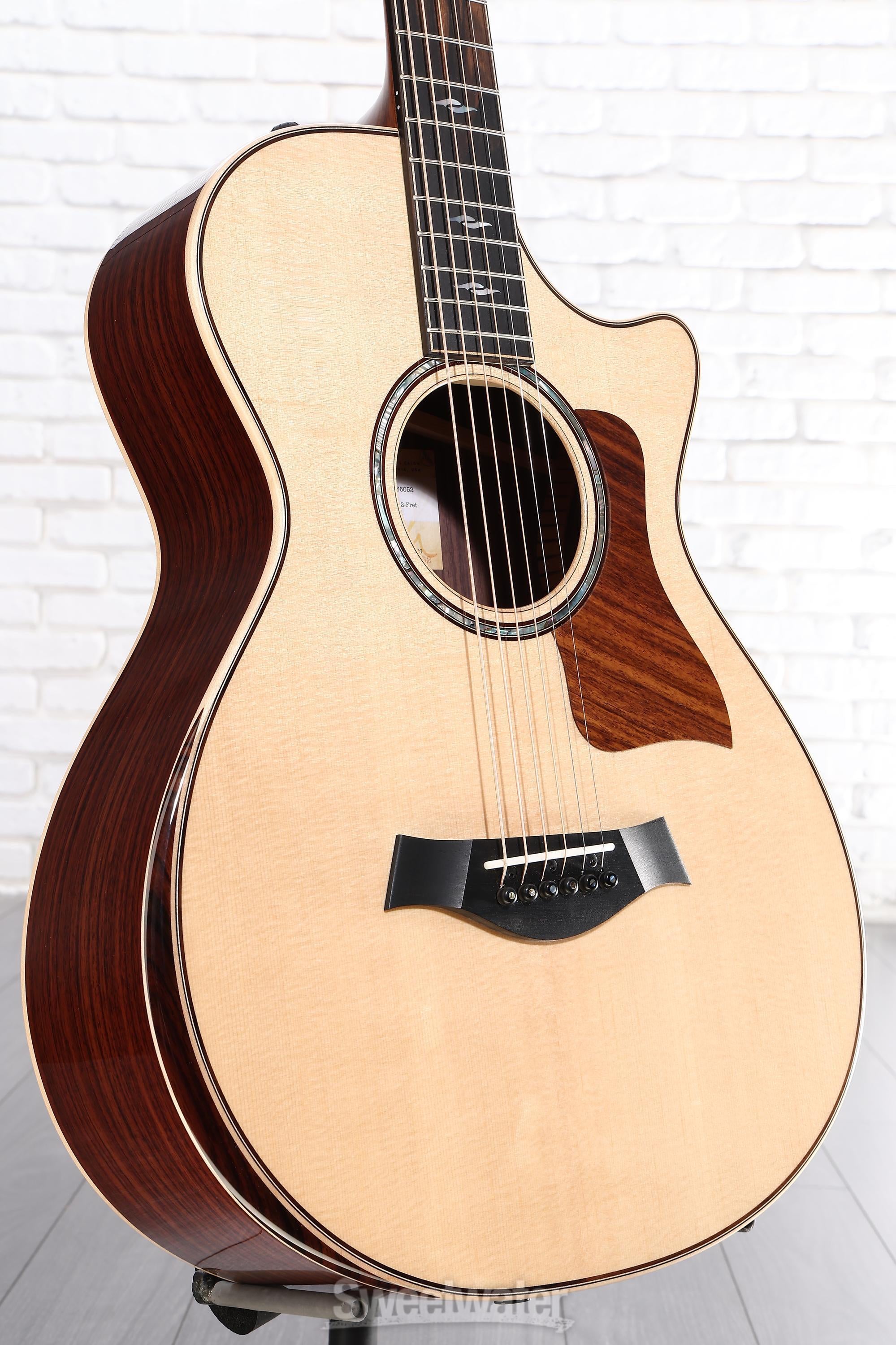 One of the crown jewels in Sweetwater’s Guitar Gallery, the Taylor 812ce 12-fret acoustic-electric guitar is an absolute gem. There’s nothing quite like the look, feel, and sound of a well-crafted small-body guitar. With the 812ce, Taylor puts Grand Concert playability and tonality into an acoustic-electric handcrafted from the finest solid tonewoods and graced with luxurious 800 Series appointments. Featuring a Sitka spruce top, Indian rosewood back and sides, a tropical mahogany neck, and a West African ebony fingerboard, the 812ce is perfect for tracking and layering. It plays very comfortably, thanks to its Grand Concert body, graceful Venetian cutaway, ergonomically radiused rosewood armrest, and shorter scale length. You’ll love the clear, balanced tone — a sound forged by Taylor’s revolutionary V-Class bracing and amplified flawlessly by the onboard Expression System 2 electronics. As your eyes drink in this instrument’s understated elegance, your hands savor its flawless playability, and your ears revel in its rich, organic tone, you’ll treasure your Taylor 812ce 12-fret. It’s a feast for the senses.