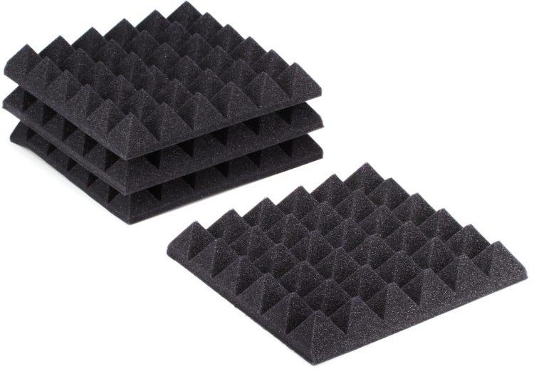 12" x 12" x 2" Acoustic Foam Pyramid Absorption Panel - Charcoal, 4-pack
