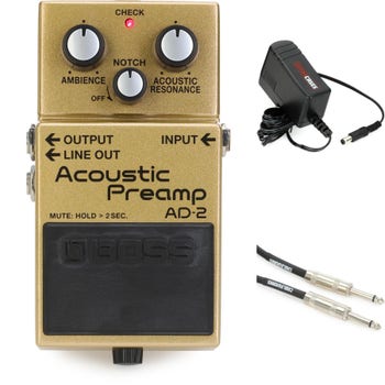 Acoustic Preamp Pedal with Controls for Resonance, Notch, Ambience, and Line and Instrument-level Outputs