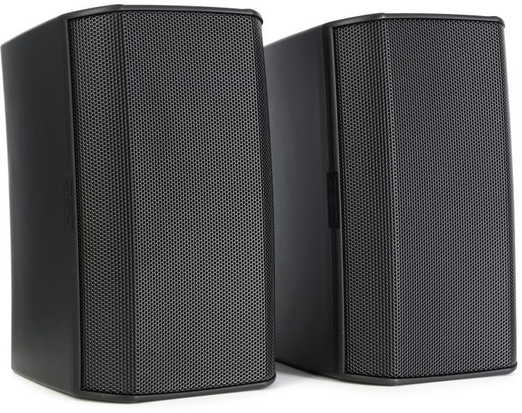 50W, 8-ohm Weather-resistant Speaker with 4.5" Woofer, 0.75" Tweeter, 70V/100V Transformer, and 120° Conical DMT Coverage - Black (Pair)