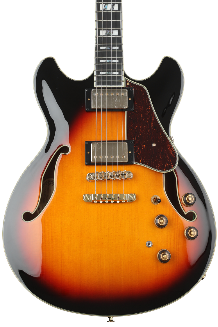 Semi-hollowbody Electric Guitar with Spruce Top, Maple Back and Sides, 3-piece Nyatoh/Maple Neck, Ebony Fingerboard, and 2 Humbucking Pickups - Brown Sunburst