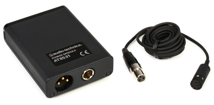 Miniature Lavalier Condenser Microphone for Voice, Acoustic Guitar, and Various Hard-to-Mic Instruments, with Cardioid Pickup Pattern, Clothing and Instrument Clips, Power Module, and Case