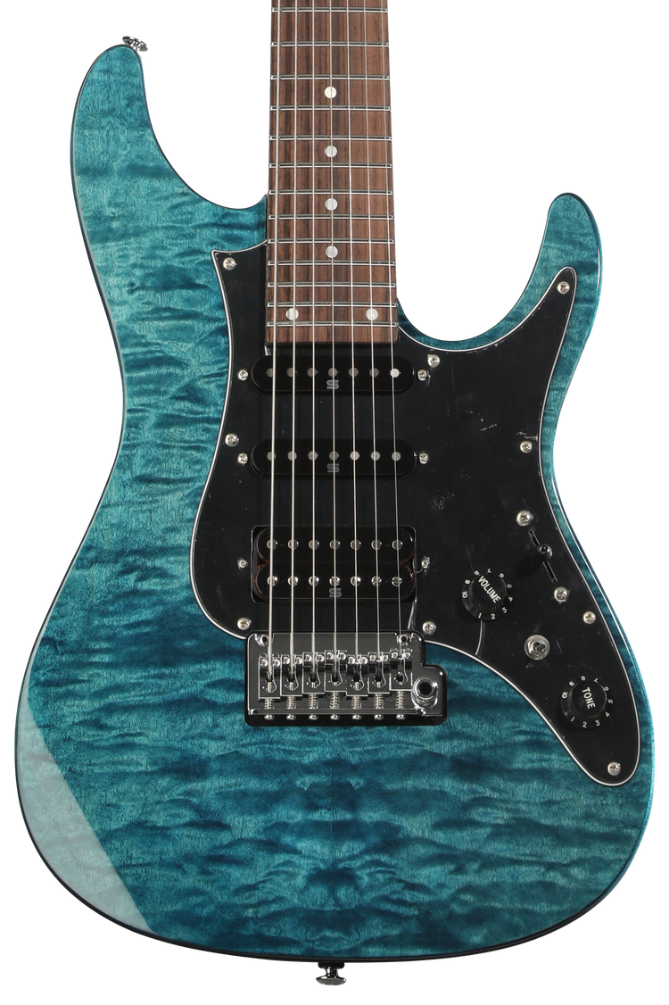 7-string Solidbody Electric Guitar with Maple Top, Basswood Body, Maple Neck, Rosewood Fingerboard, 1 Humbucking Pickup, 2 Single-coil Pickups, and Gotoh Tremolo - Cosmic Blue