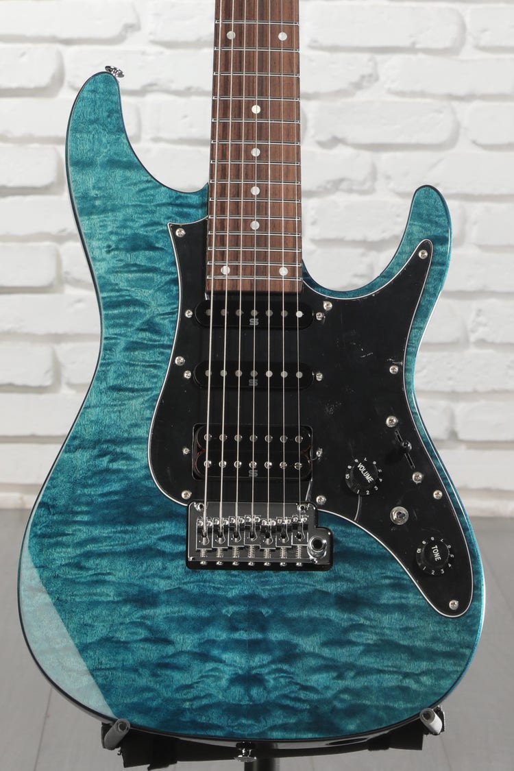 7-string Solidbody Electric Guitar with Maple Top, Basswood Body, Maple Neck, Rosewood Fingerboard, 1 Humbucking Pickup, 2 Single-coil Pickups, and Gotoh Tremolo - Cosmic Blue