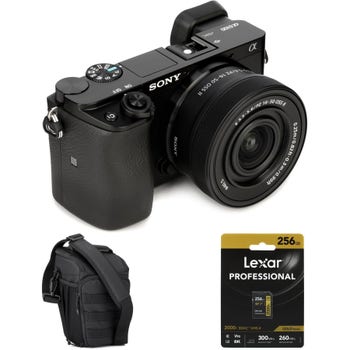 4K Mirrorless Camera with 24.2MP APS-C Exmor CMOS Sensor, BIONZ X Processor, AF, Tracking, 3" LCD, Wi-Fi, Bluetooth, and 16-50mm Lens