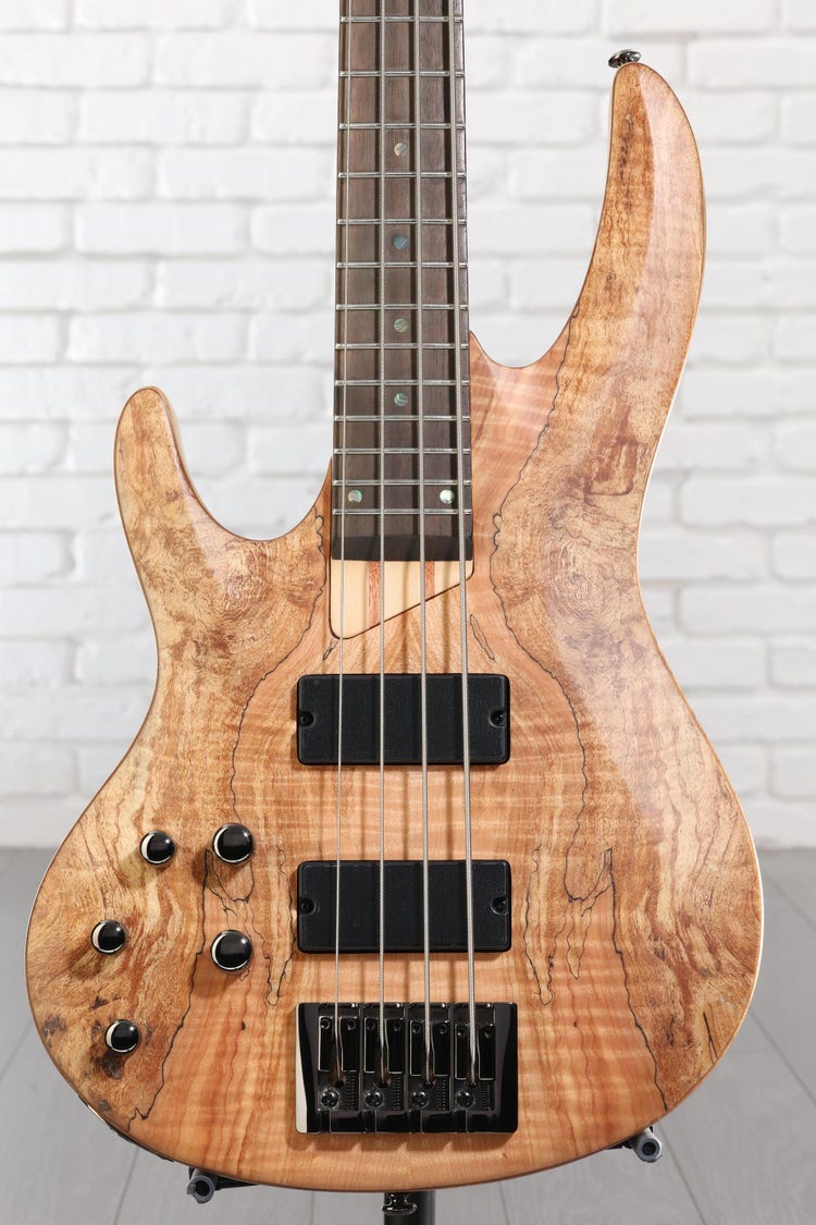 4-string Electric Bass, Left-handed, with Spalted Maple Top, Ash Body, 5-piece Maple/Jatoba Neck, Roasted Jatoba Fingerboard, and 2 Humbucking Pickups - Natural Satin