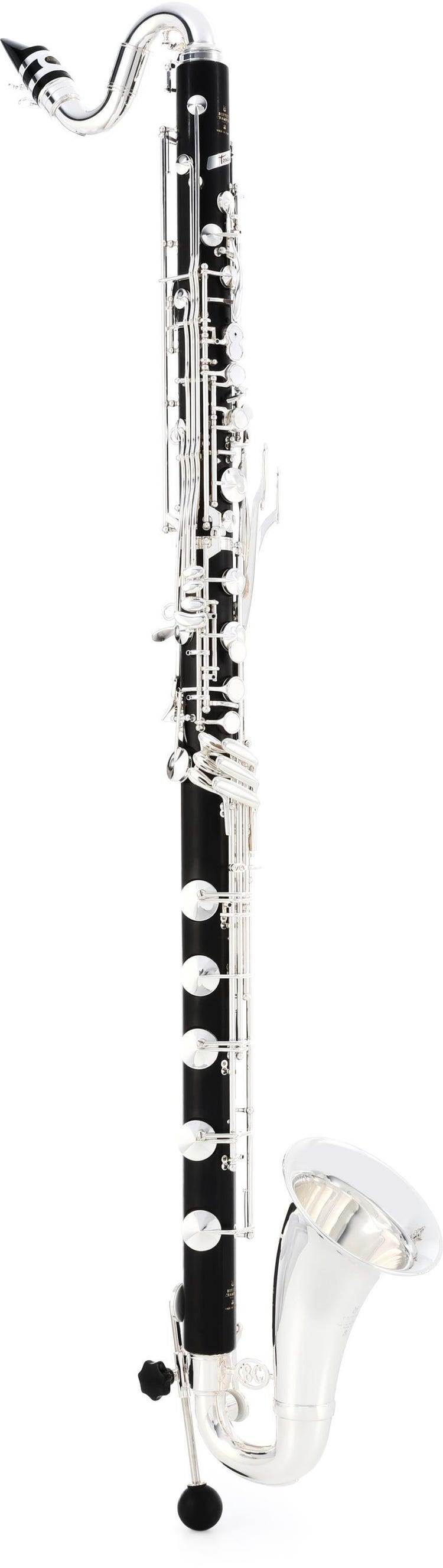 Bb Bass Clarinet with Grenadilla Wood Body, Silver-plated Neck and Bell, Silver-plated Keys, Low C Key, Double Low D & Eb Keys, and Case