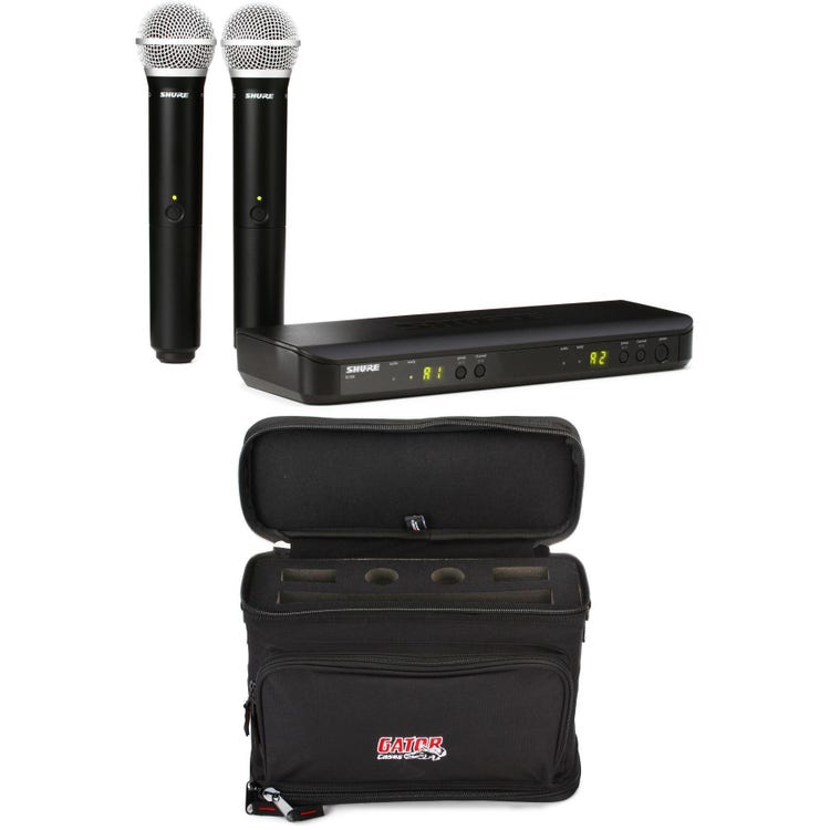 Wireless Handheld System with 2 PG58 Handheld Microphone Transmitters, BLX88 Dual-channel Wireless Receiver, and Carry Bag