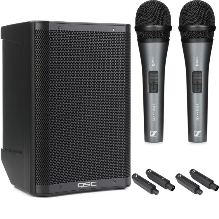 QSC CB10 Powered PA Loudspeaker with Pair of Vocal Microphones, and Wireless Systems