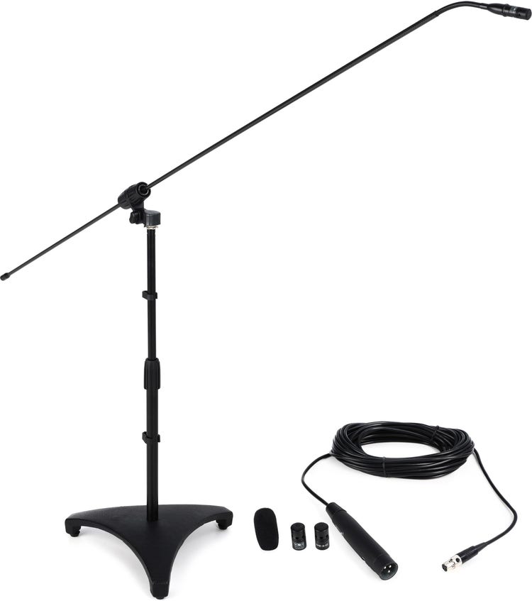 Boom Condenser Mic with Rigid 57" Carbon Fiber Boom; Cardioid, Super-cardioid, and Omni Capsules; Mini-XLR to XLR Cable with Recessed 10dB Pad and 80Hz Highpass Filter; and 24" Mic Stand