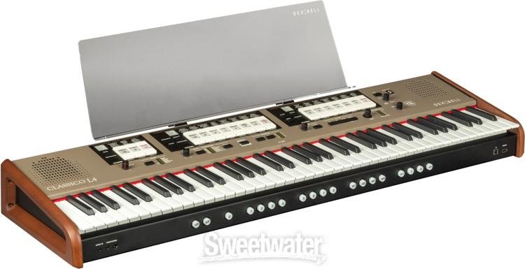 The Classico L4 serves up state-of-the-art high-resolution instrument samples in a sleek, roadworthy 31-pound chassis with intuitive controls that let you freely combine organ and orchestral parts and control them independently. Assign your highest key to a solo instrument — trumpet, for instance — and your lowest key to a bass or timpani, and just play normally. The result will be sonically spectacular and musically coherent, without the need for complicated programming. Meanwhile, seven types of lush reverb are located on-deck just above the keyboard for immediate global enhancement on the fly.