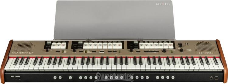 Seamlessly blending timeless craftsmanship and tradition with advanced technology, the Dexibell Classico L4 is a unique instrument that delivers stunning, high-resolution digital organ and orchestral sounds along with hands-on controls for combining different parts and controlling them independently. Powered by Dexibell's cutting-edge True 2 Life (T2L) hybrid sampling/modeling technology, the next-generation Classico L4 represents a significant evolution from its L3 predecessor — a huge hit at Sweetwater — offering improved sound, increased versatility, and an even more intuitive interface courtesy of additional memory pistons that give you greater control for a more engaging playing experience. Equipped with a lightweight 76-note keybed, a powerful built-in speaker system, Bluetooth audio streaming, and much more, the Dexibell Classico L4 is the ideal performance organ for stage, studio, and home.