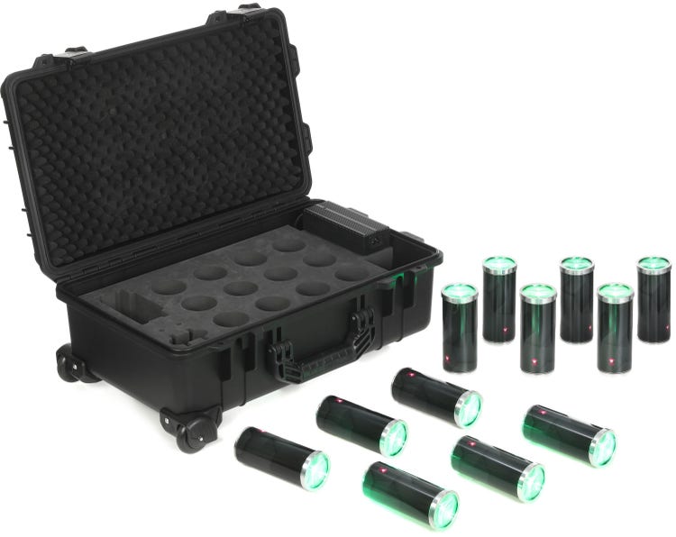 12-piece 15W RGBAW LED Can 2+ IP PARs with Fresnel Lenses and Carrying Case - Grey