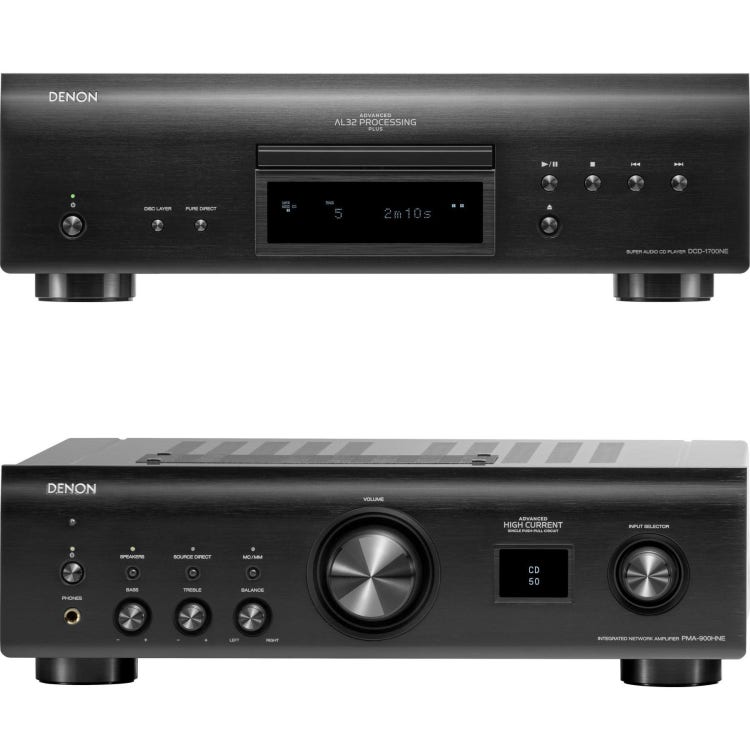 Denon DCD-1700NE CD/SACD Media Player with PMA-900HNE Stereo Integrated Amplifier - Black