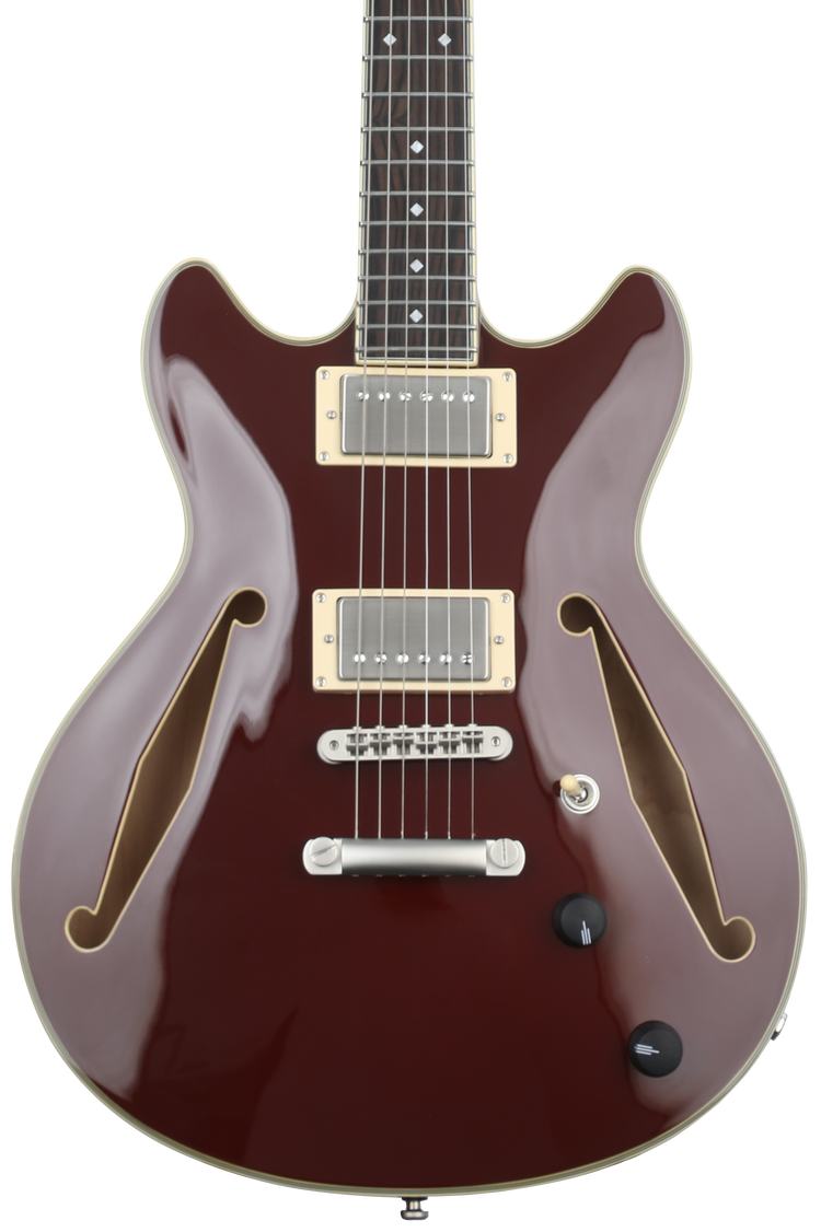 Semi-hollowbody Electric Guitar with Maple Body, Maple/Walnut Neck, Ebony Fingerboard, and 2 Humbucking Pickups - Solid Wine