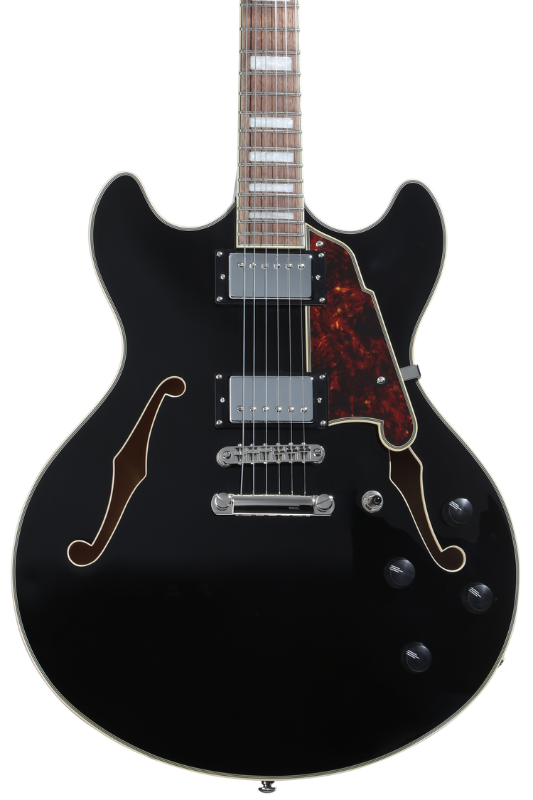 Semi-hollowbody Electric Guitar with Maple Top, Back, and Sides, Maple Neck, Walnut Fingerboard, and 2 Humbucking Pickups - Solid Black