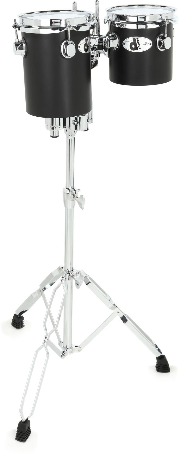 6" x 6" and 8" x 6" Fiberglass Mounted Toms with Double Tom Stand and 2 Mounting Arms - Satin Black