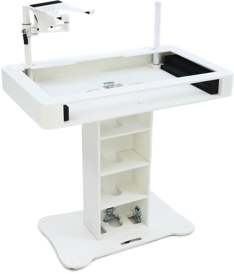 DJ Podium with Birchwood Laminate Panels, High-density Foam Cushions, Laptop Stand, and Storage Shelves - White