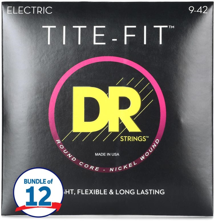 DR Strings LT-9 Tite-Fit Compression Wound Electric Guitar Strings - .009-.042 Light (12 Pack)