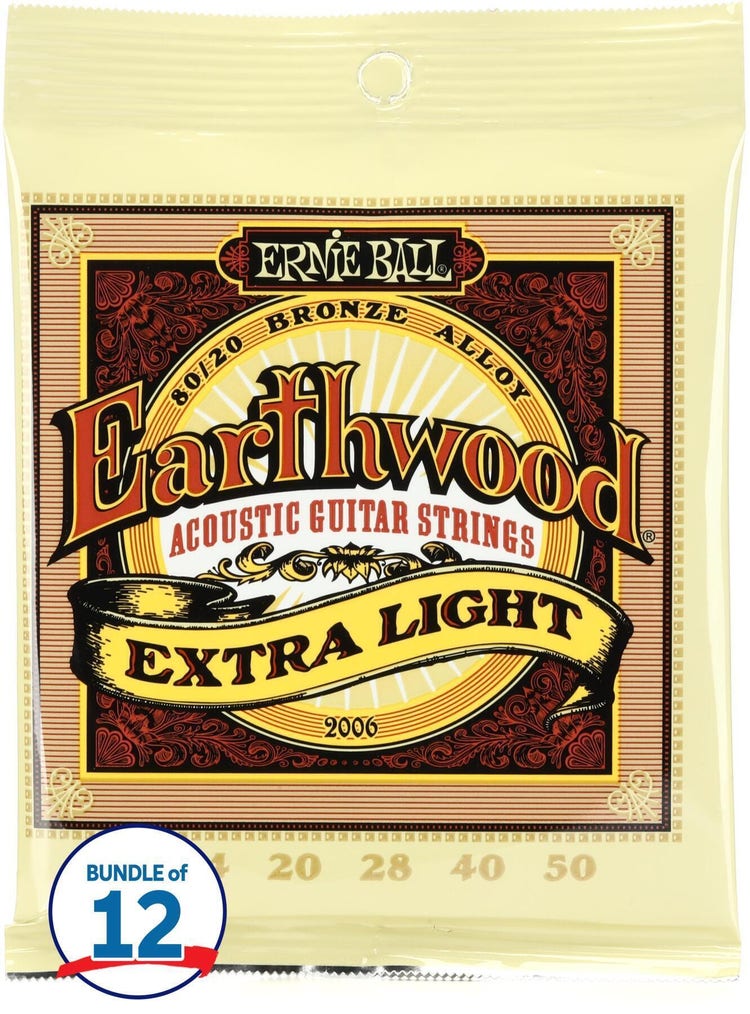 Ernie Ball 2006 Earthwood 80/20 Bronze Acoustic Guitar Strings - .010-.050 Extra Light (12-pack)
