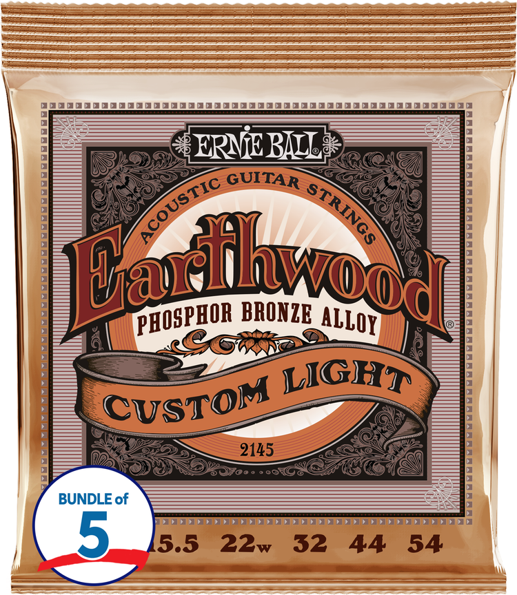 Ernie Ball Earthwood Phosphor Bronze Acoustic Guitar Strings - .0115-.054 Custom Light (5 Pack)