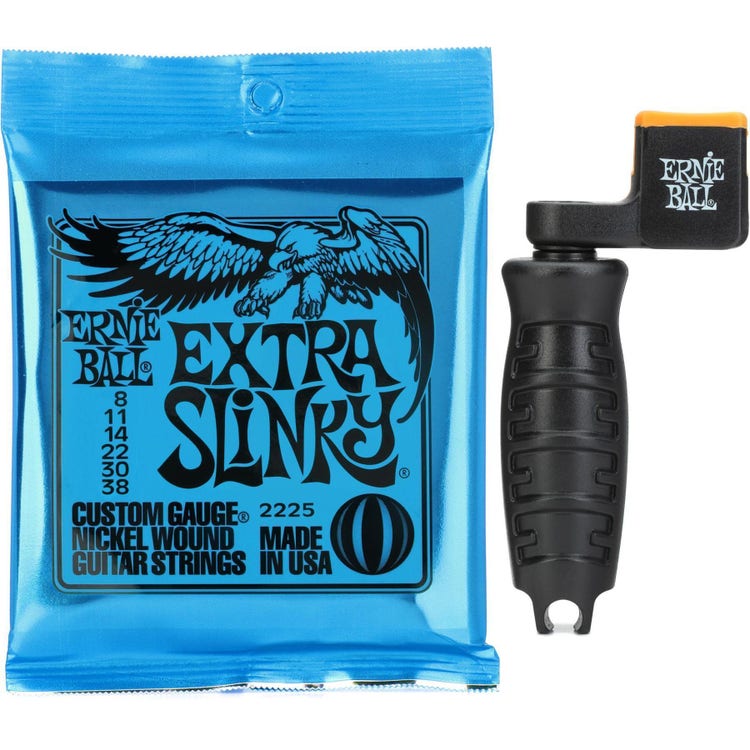 .008-.038 Custom Gauge Electric Guitar Strings, Nickel Wound, Extra Slinky and Guitar/Bass Peg Winder