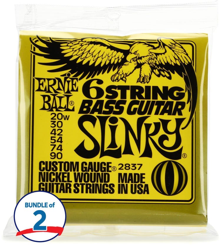 Ernie Ball 2837 Slinky Nickel Wound Electric Bass Guitar Strings, 29 5/8 Scale (2-pack)