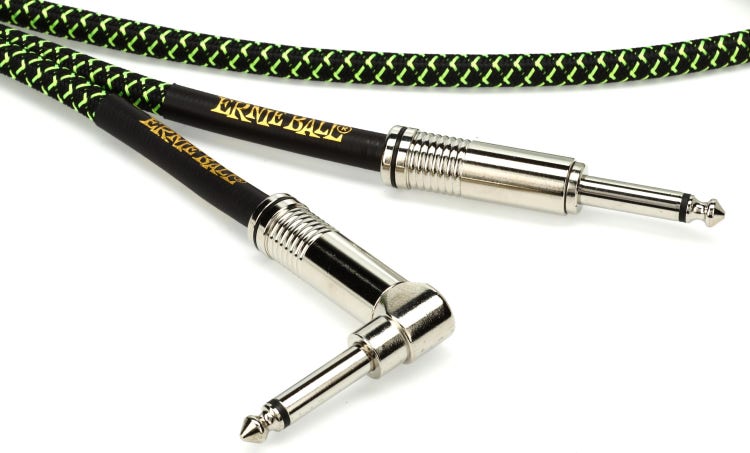 Ernie Ball P06082 Braided Straight to Right Angle Instrument Cable - 18 foot Black/Green