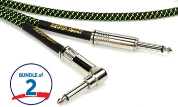 Guitar Cable, 1/4" TS Male - 1/4" TS Male Right Angle, 18' Long - Black/Green