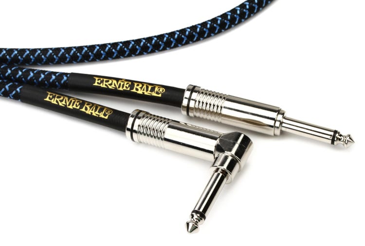 Ernie Ball P06060 Braided Straight to Right Angle Instrument Cable - 25 foot Black/Blue